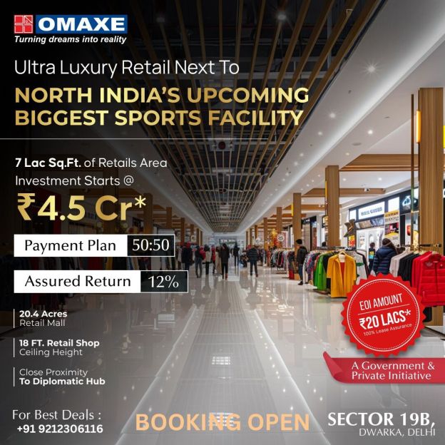 Capital Appreciation The strategic location and the established brand reputation of Omaxe suggest a high potential for capital appreciation over time. As Dwarka continues to develop, the value of commercial spaces in this area is expected to rise.
